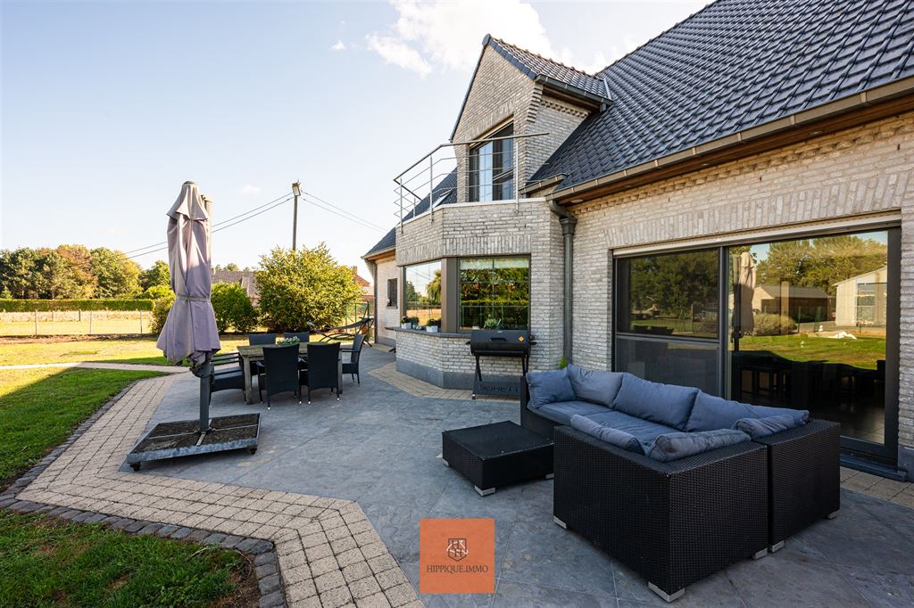 De moderne woning, gebouwd in 2010, combineert comfort en functionaliteit. Op het gelijkvloers bevindt zich een inpandige garage, een ruime inkomhal en een lichtrijke leefruimte met een open keuken. Aan de andere kant van de hal zijn er een bureau, een praktische mudroom, een badkamer met inloopdouche en een aparte achteringang. Op de eerste verdieping zijn er vier ruime slaapkamers, een apart toilet, een dressing en een badkamer met zowel een inloopdouche als een ligbad. Daarnaast beschikt de woning over een zolderverdieping waar zich nog een bijkomende slaapkamer bevindt en een bergruimte.
