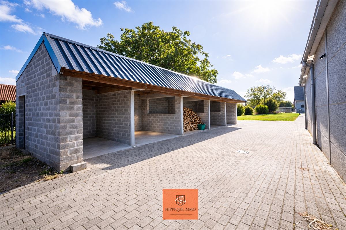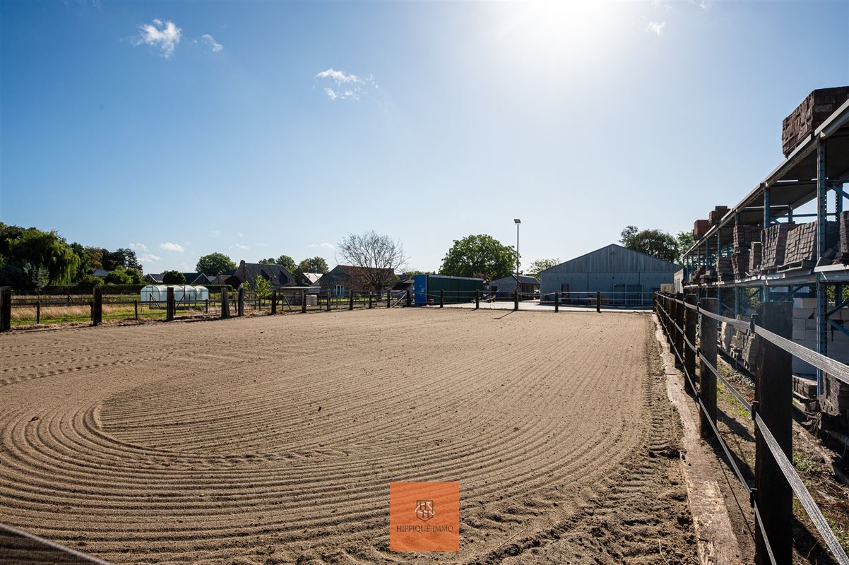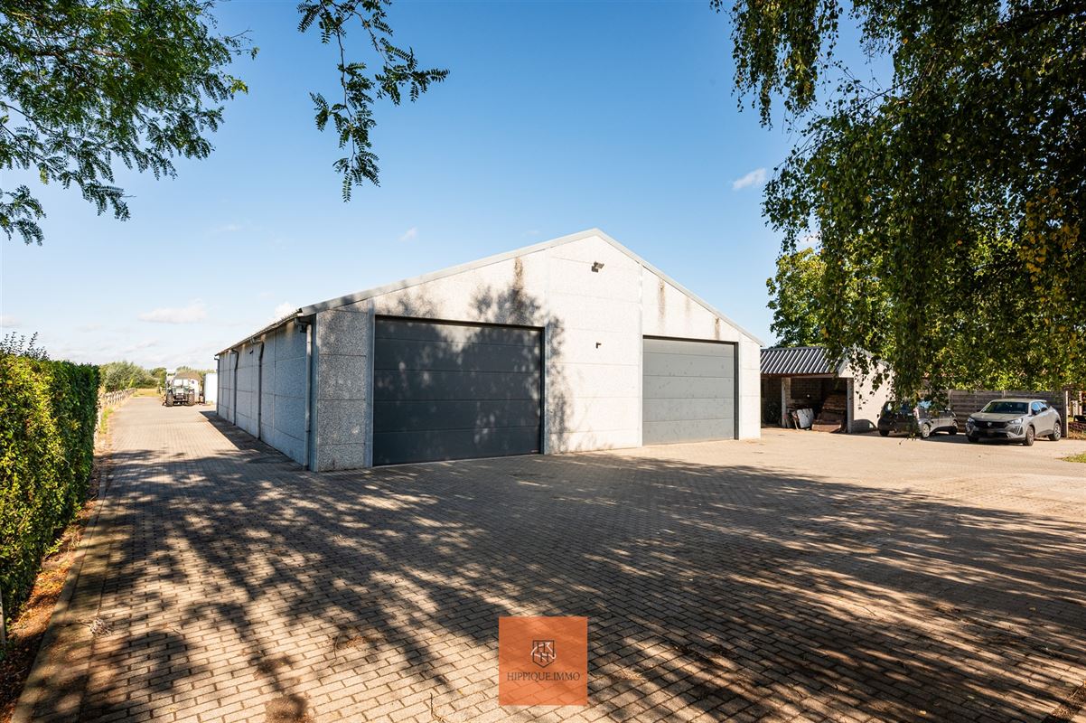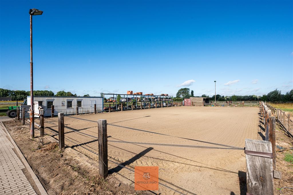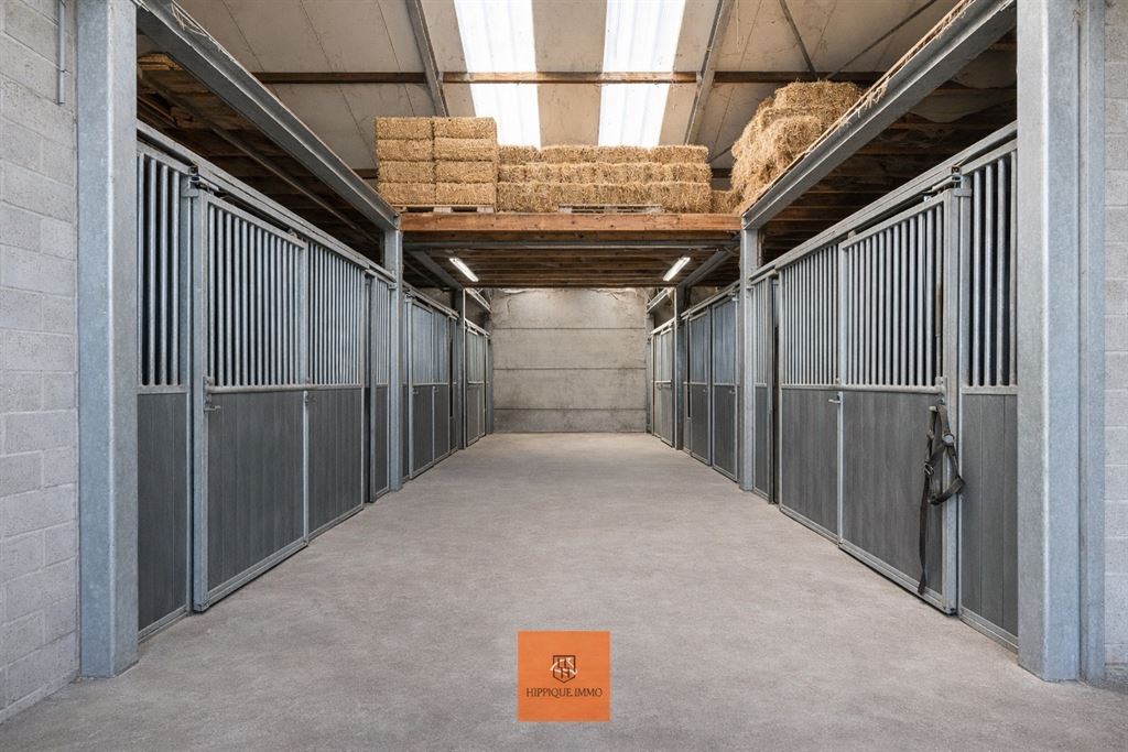 Achter de woning vind u de opslagloods 15m 15m met daarachter een eerste stalgebouw met 6 ruime boxen. Aan de zijkant bevinden zich 4 extra stallen in een apart gebouw. Achter de gebouwen ligt een buitenpiste van 20m x 40m met verlichting en daarachter strekt zich weides uit.