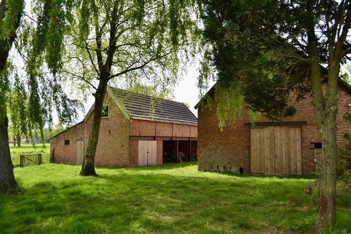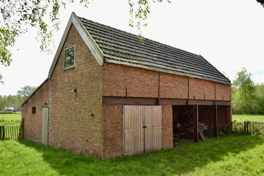 Achter de woning vindt u 2 karaktervolle schuren. De schuren zijn in baksteen opgetrokken en bieden tal van mogelijkheden: hobbyruimtes, opslagplaatsen, een atelier of stalling voor dieren. Tevens staat achterop het terrein nog de ruïne van een oude "Roterij" (Vlasfabriek, vlas is waar deze streek vroeger bekend om was.), inclusief de bijbehorende grote vijver van ca. 300m². Deze vijver is momenteel dicht gegroeid maar kan met enig snoeiwerk weer open gemaakt worden.
