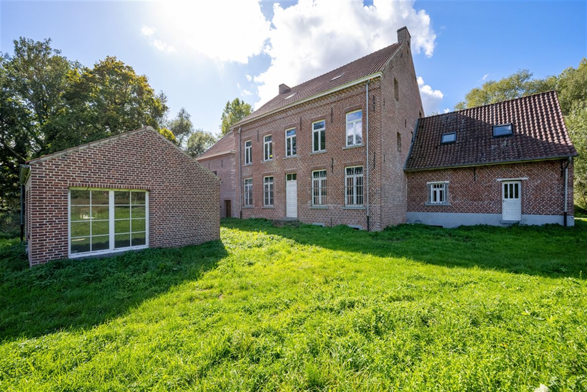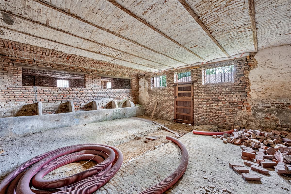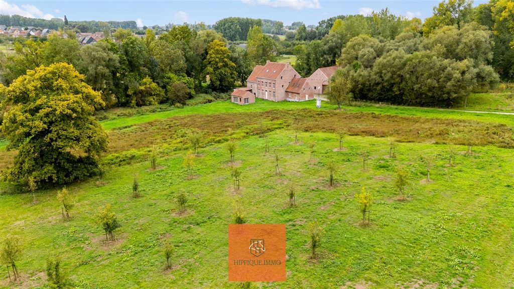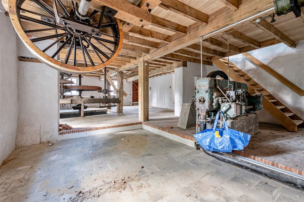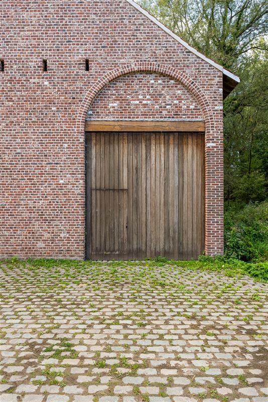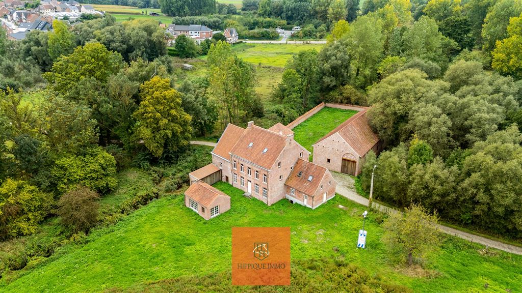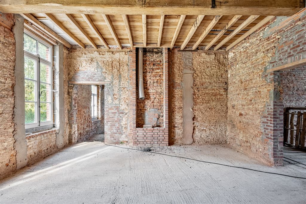 De eigendom omvat een ruwbouw-woning met hoge plafonds en een royale indeling, waardoor u ruime leefruimtes en meer dan vier slaapkamers kan creëren. De bewoonbare oppervlakte bedraagt maar liefst 459m². Deze woning staat volledig gestript. Aanpalend aan de woning vindt u de volledig gerestaureerde watermolen, die door zijn originele elementen en imposante houten balken geschiedenis en karakter uitstraalt. Aan de overkant van de woning met watermolen staan een charmant koetshuis (4,5m x 10,5m) en een ruime schuur (11m x 33m), waarvan de daken reeds werden vernieuwd en de muren reeds werden gerenoveerd. De schuur beschikt bovendien over een prachtig houten gebinte dat bijdraagt aan de unieke uitstraling en authenticiteit van het geheel. Deze gebouwen staan op het bouwkundig erfgoed waardoor er veel mogelijkheden zijn met de schuur zoals kantoor, garage, paardenstalling of opslagplaats. De omliggende weides maken de eigendom bijzonder geschikt voor dierenliefhebbers.