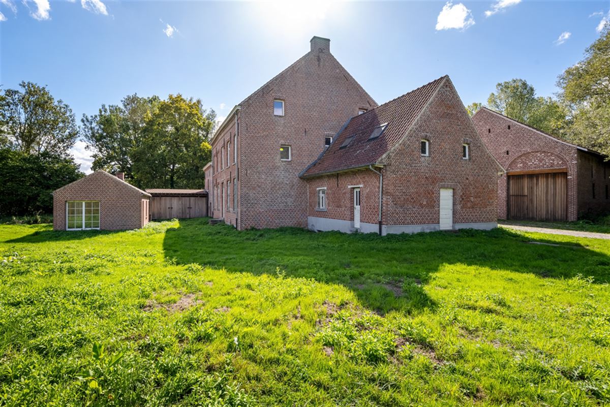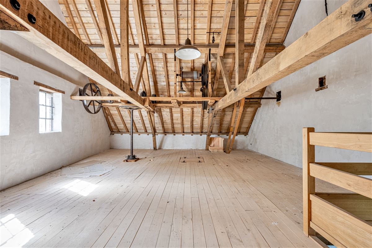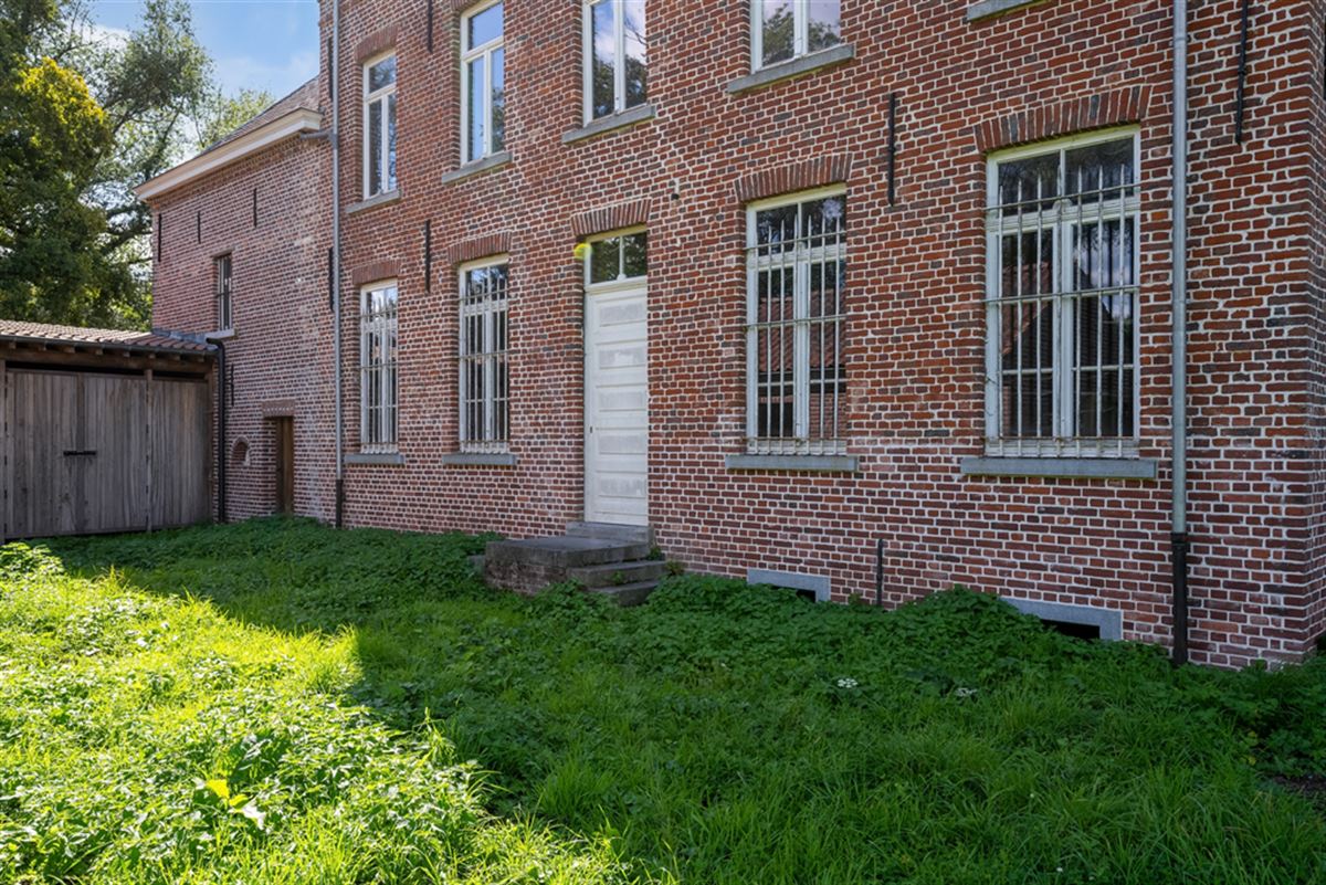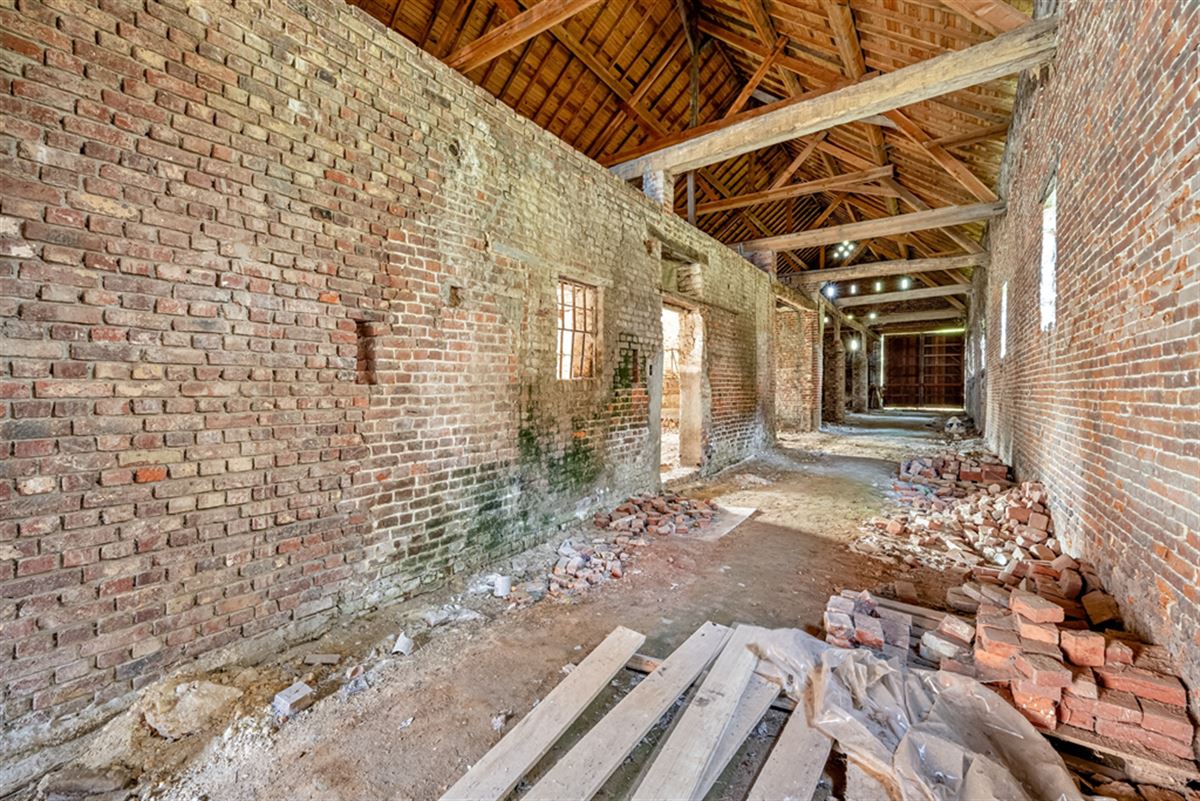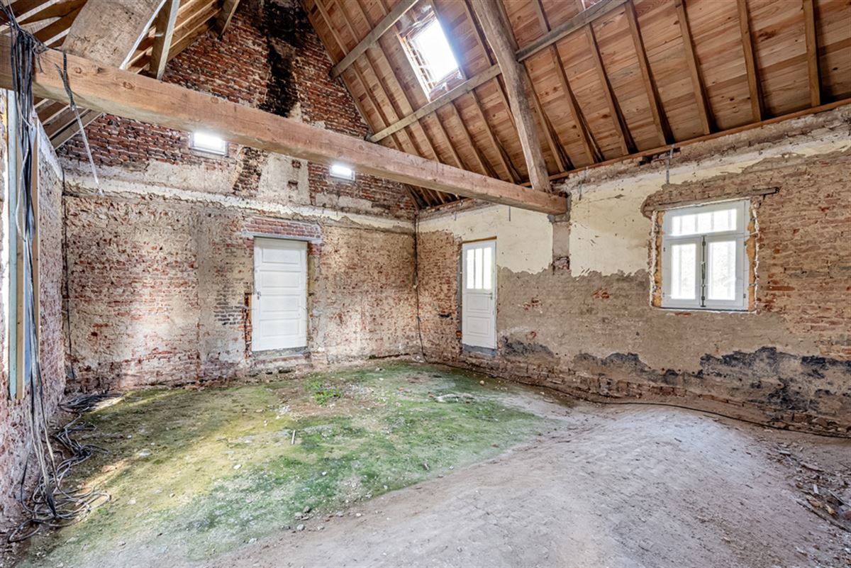 De eigendom omvat een ruwbouw-woning met hoge plafonds en een royale indeling, waardoor u ruime leefruimtes en meer dan vier slaapkamers kan creëren. De bewoonbare oppervlakte bedraagt maar liefst 459m². Deze woning staat volledig gestript. Aanpalend aan de woning vindt u de volledig gerestaureerde watermolen, die door zijn originele elementen en imposante houten balken geschiedenis en karakter uitstraalt. Aan de overkant van de woning met watermolen staan een charmant koetshuis (4,5m x 10,5m) en een ruime schuur (11m x 33m), waarvan de daken reeds werden vernieuwd en de muren reeds werden gerenoveerd. De schuur beschikt bovendien over een prachtig houten gebinte dat bijdraagt aan de unieke uitstraling en authenticiteit van het geheel. Deze gebouwen staan op het bouwkundig erfgoed waardoor er veel mogelijkheden zijn met de schuur zoals kantoor, garage, paardenstalling of opslagplaats. De omliggende weides maken de eigendom bijzonder geschikt voor dierenliefhebbers.
