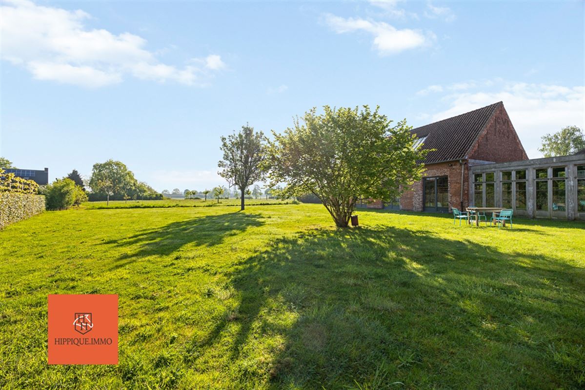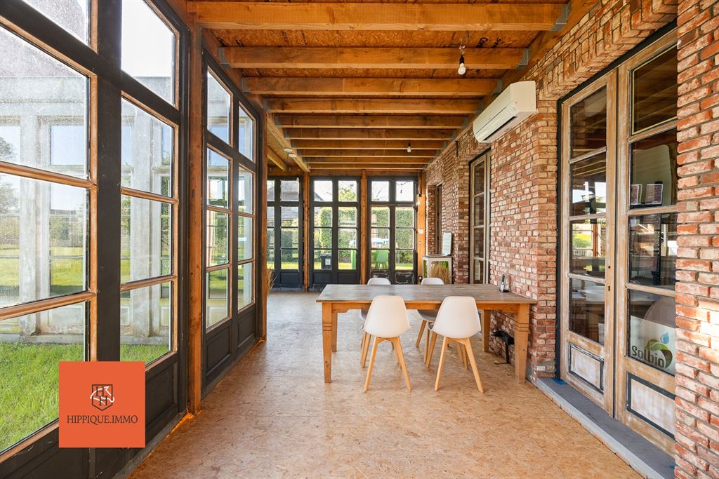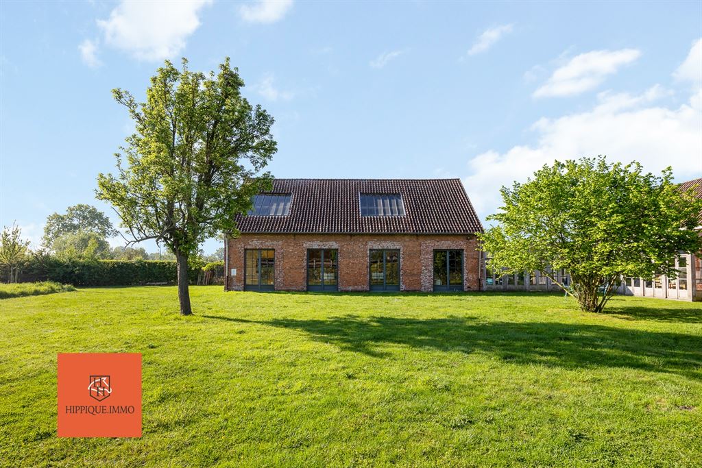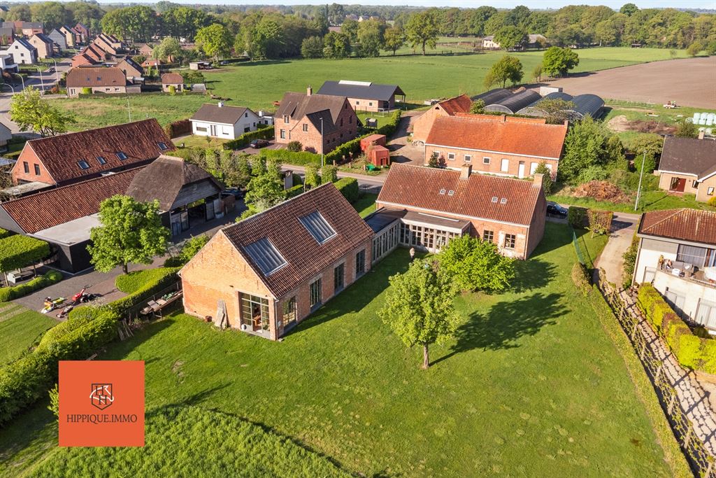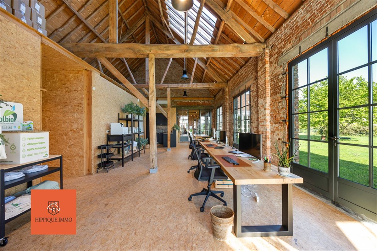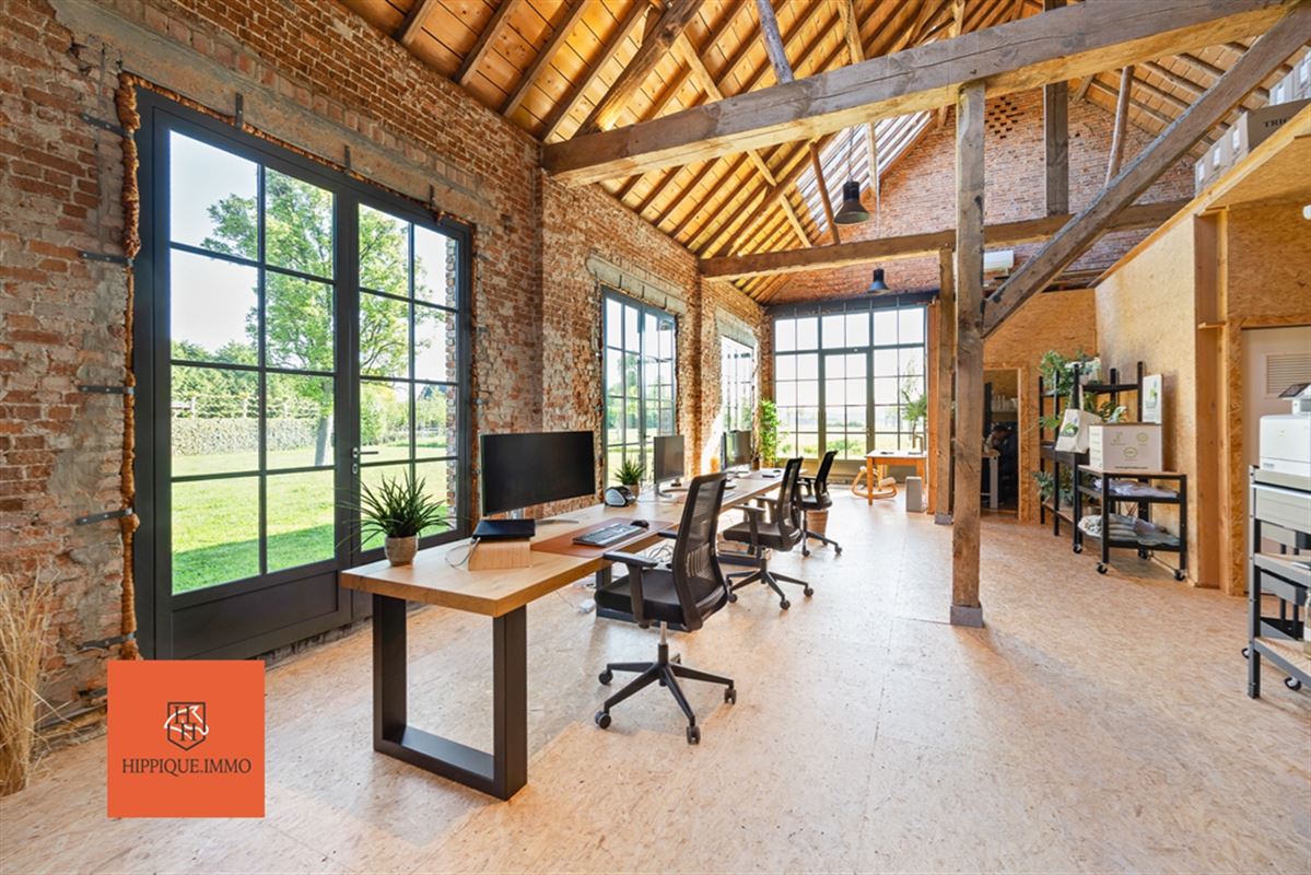 De eigendom staat op een perceel van ongeveer 1,28ha en bestaat uit twee gebouwen in L-vorm, die door een authentieke veranda met elkaar verbonden zijn. Het perceel bestaat vooraan uit een deel woongebied met landelijk karakter en achteraan uit agrarisch gebied. Deze combinatie biedt de mogelijkheid om de eigendom nog aan te passen aan de gewenste functie en te profiteren van de voordelen van een woonfunctie met de mogelijkheid om de kantoorfunctie in de gerenoveerde schuur te behouden. Dit biedt mogelijkheden om in deze prachtige schuur zelfstandige activiteiten onder te brengen. Het gebouw vooraan gelegen in woongebied, is wind- en waterdicht en kan na het bekomen van een omgevingsvergunning, teruggebracht worden naar de woonfunctie zodat u dit gebouw naar eigen smaak en wens verder kan afwerken (de huidige eigenaar heeft geopteerd om vloerverwarming aan te brengen en hiermee is rekening gehouden). Het bijgebouw achteraan is momenteel vergund en in gebruik als landscape kantoor. Ook deze ruimte kan nog verder ingericht worden of eventueel een andere functie verkrijgen. Mits het aanvragen en verkrijgen van de nodige omgevingsvergunning kan er een bestemmingswijziging bekomen worden in lijn met het woongebied en het agrarisch gebied.