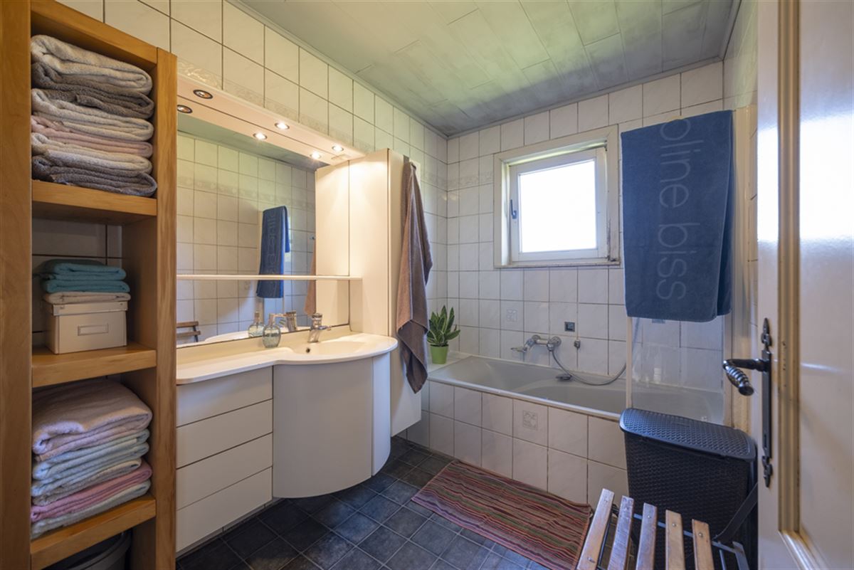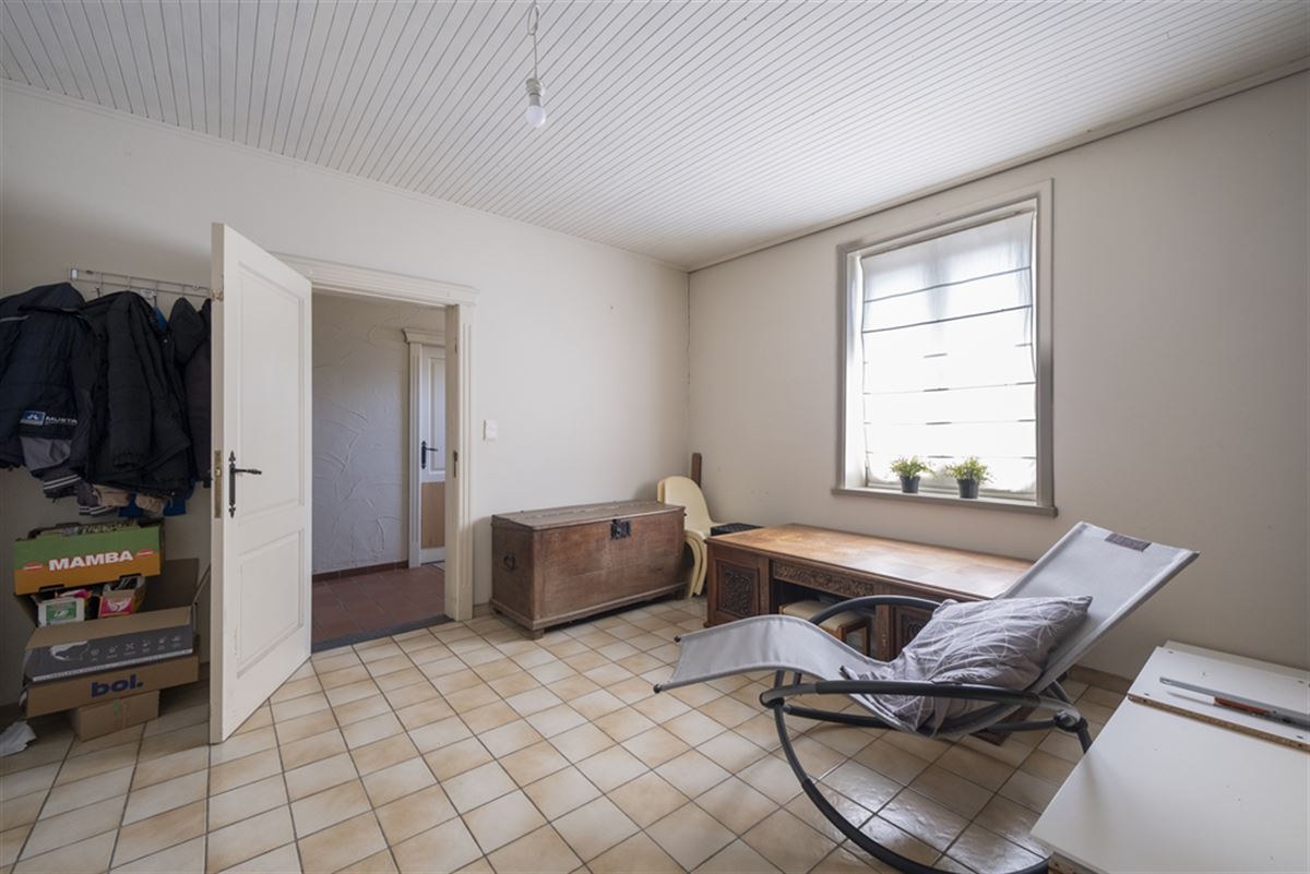 De woning is stilaan aan renovatie toe, maar biedt een stevige structuur met veel potentieel. Op het gelijkvloers bevinden zich een inkomhal, leefruimte met zit- en eetgedeelte, keuken, bureau en een slaapkamer. Op de verdieping is er een ruime slaapkamer en extra ruimte die perfect kan dienen als 3de slaapkamer. De deels verharde tuin biedt privacy en is ideaal voor het aanleggen van een terras.