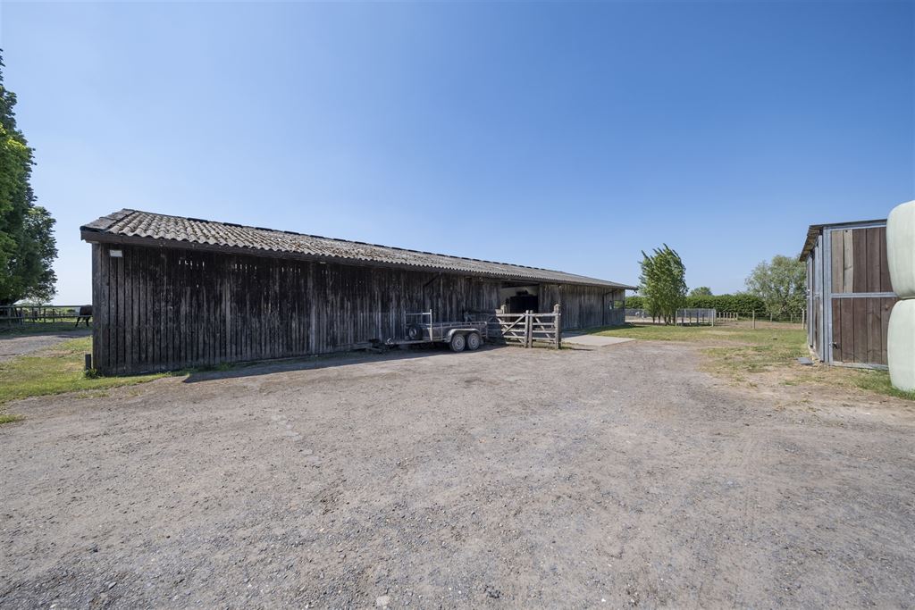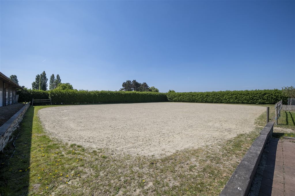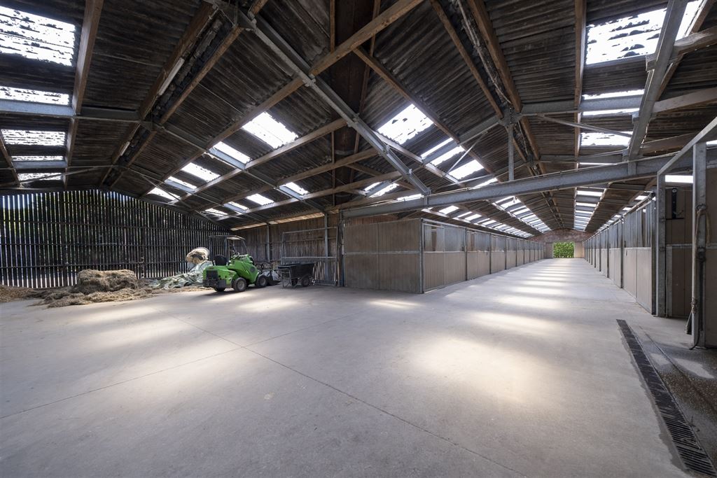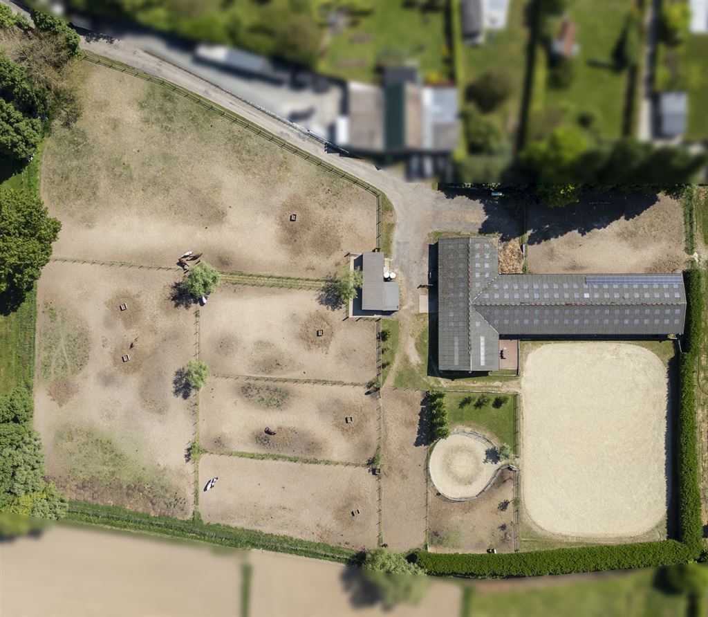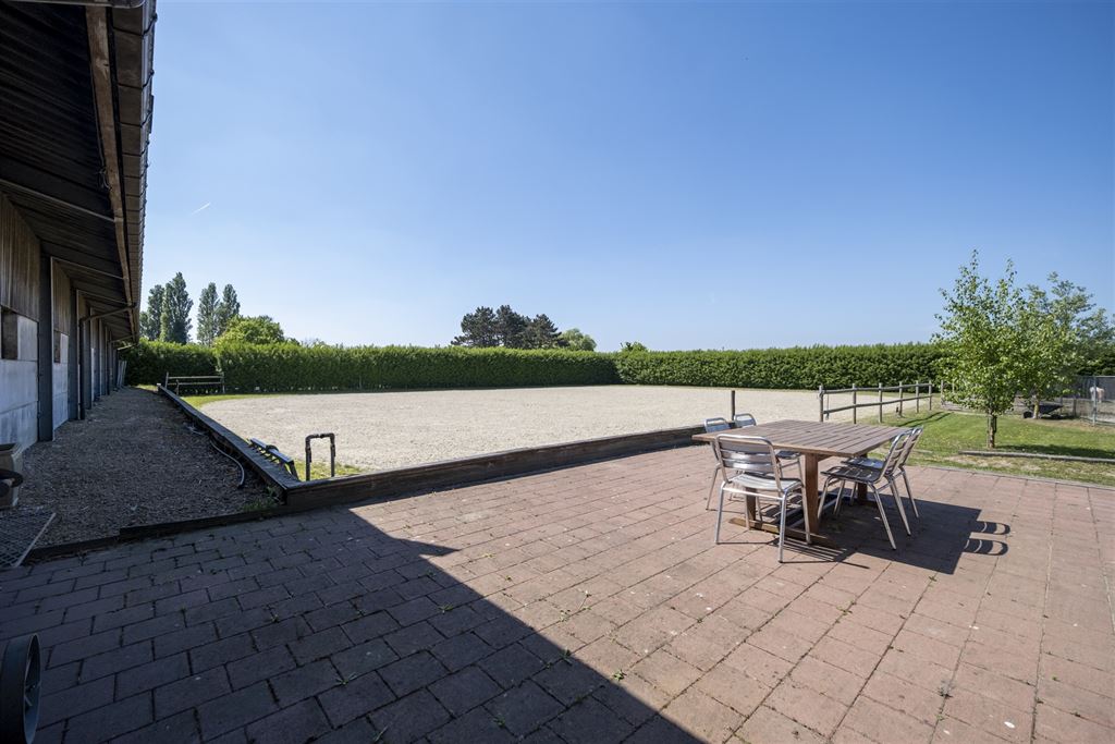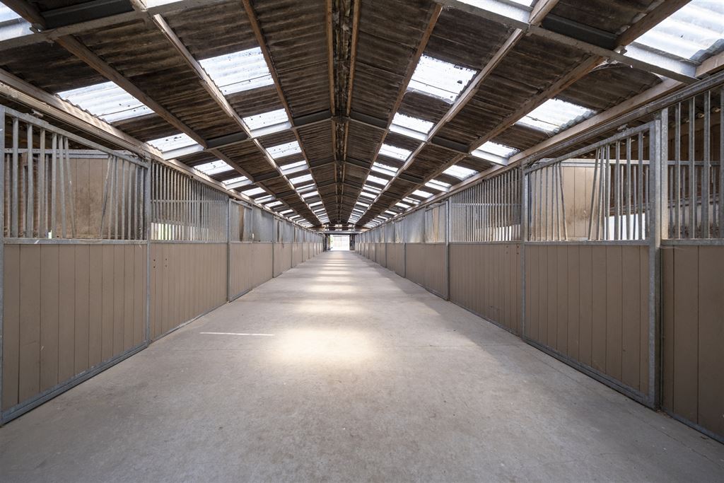 De paardenaccommodatie is volledig ingericht voor professioneel gebruik. Ze omvat een ruim stalgebouw met 22 binnenstallen, een brede gang, wasplaats met warm water, solarium, zadelkamer en 3 extra buitenstallen. Verder is er een longeercirkel, een buitenpiste van 33m x 55m met geopad, drainage en sproeisysteem. Een grote opslagplaats voor hooi en stro en cafetaria maken het geheel compleet. De milieuvergunning klasse 2 voor het houden van 30 paarden is geldig tot 11/03/2032.
