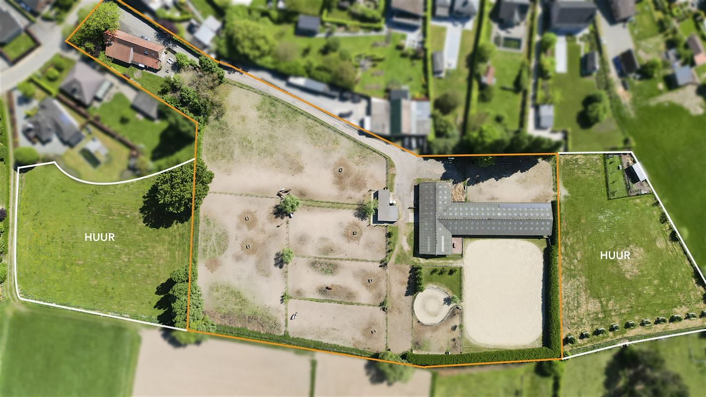 Dit veelzijdige landgoed strekt zich uit over ca. 1,5 hectare en omvat een ruime woning, stalgebouwen, buitenpiste en weides. Dankzij de praktische indeling van het perceel zijn woning, stallen en weides optimaal op elkaar afgestemd, met de nodige privacy voor de woning. Ook twee aanpalende weides kunnen bijgehuurd worden, voor wie meer grasland wenst.
