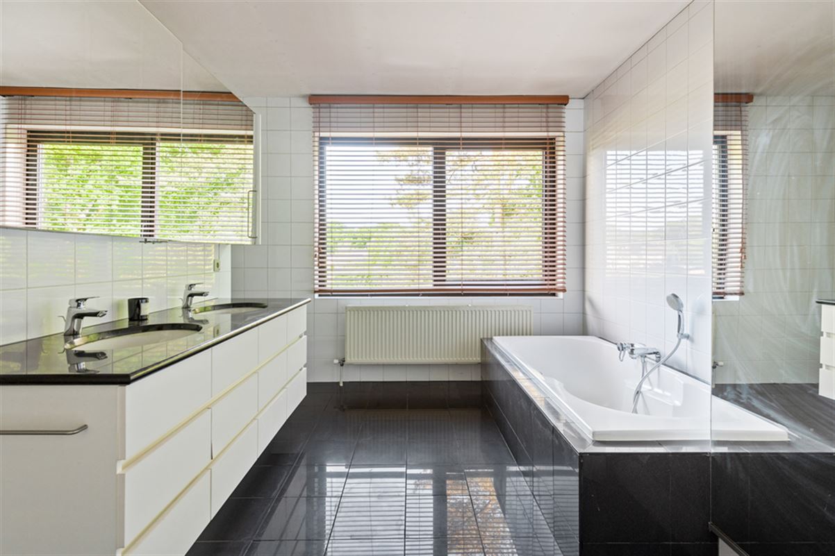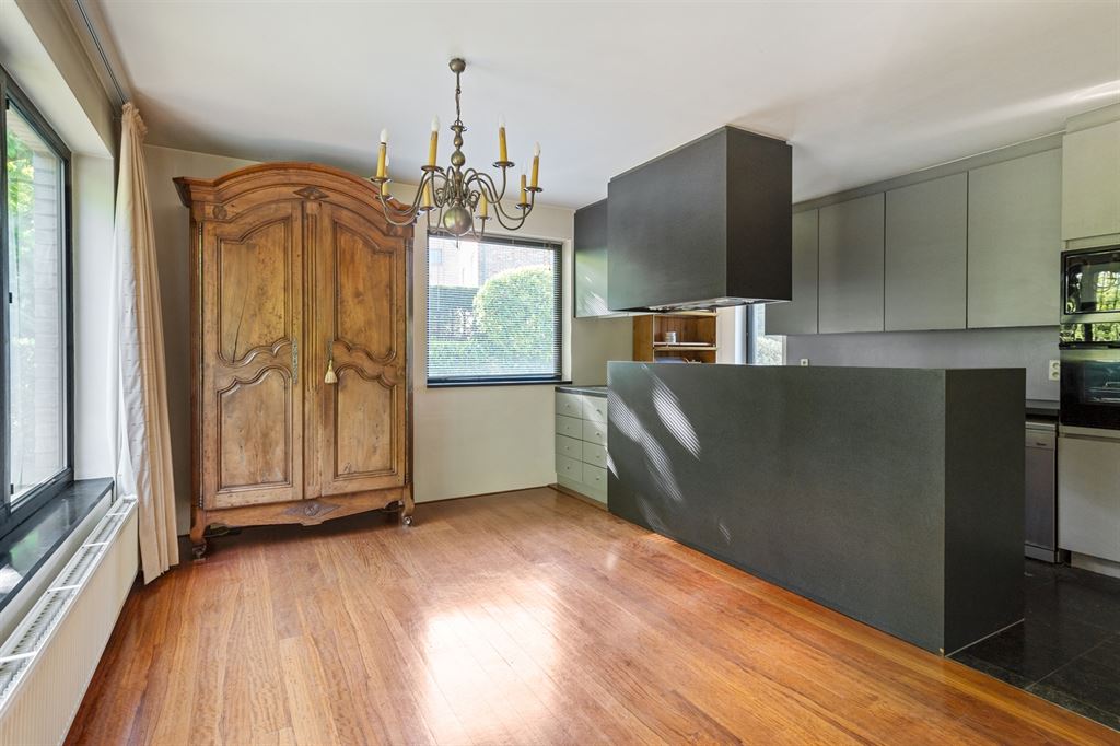 De woning is functioneel en doordacht ingedeeld en er werd veelvuldig gebruik maakt van betere materialen zoals parketvloeren. Op het gelijkvloers bevindt zich vooraan een inkomhal met gastentoilet die ons naar de centrale en lichtrijke woonkamer brengt, die overgaat in een gezellige zithoek met open haard en een aparte bureau, die een uniek open concept hebben dat zich uitstrekt over bijna de ganse achterkant van de woning, met een overweldigend zicht op het groen dankzij de kamershoge ramen. Daarnaast bevindt zich een volledig uitgeruste keuken met aparte eethoek, die aansluit op een praktische koele berging en wasplaats. De eerste verdieping telt 4 volwaardige slaapkamers, een comfortabele badkamer en aparte douchekamer, waardoor de woning zich perfect leent voor een groter gezin. Na contactname met de gemeente is het ook mogelijk gebleken om een zwembad in de achter- of zijtuin te plaatsen en een garage bij te bouwen van maximaal 90m³ (ca. 40m² met een gemiddelde hoogte van 2,5m). Deze bijkomende mogelijkheden lichten wij ook graag toe tijdens een bezoek.