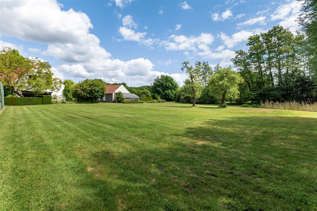 Het domein omvat een charmante woning met een hoofdgedeelte en een voormalig conciërgedeelte, paardenaccommodatie, serre, loods en een tennisterrein dat momenteel als bloementuin is ingericht. De woning ligt achteraan op het perceel wat zorgt voor maximale rust en privacy. Een aangelegde parking biedt ruime parkeermogelijkheden.