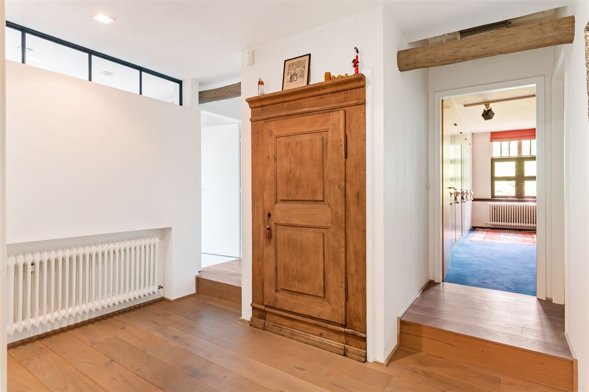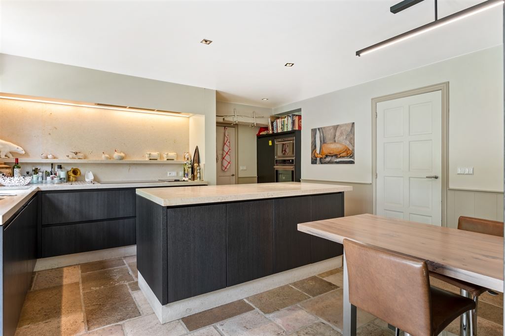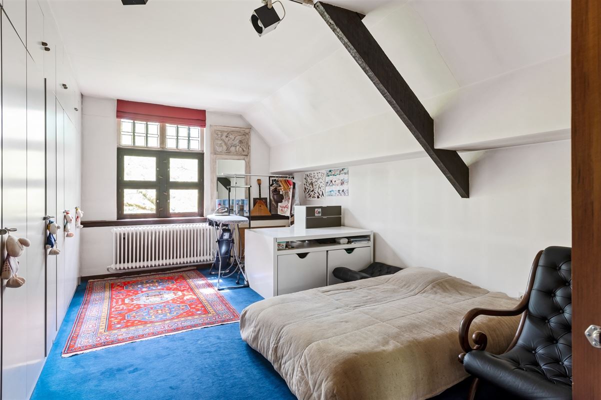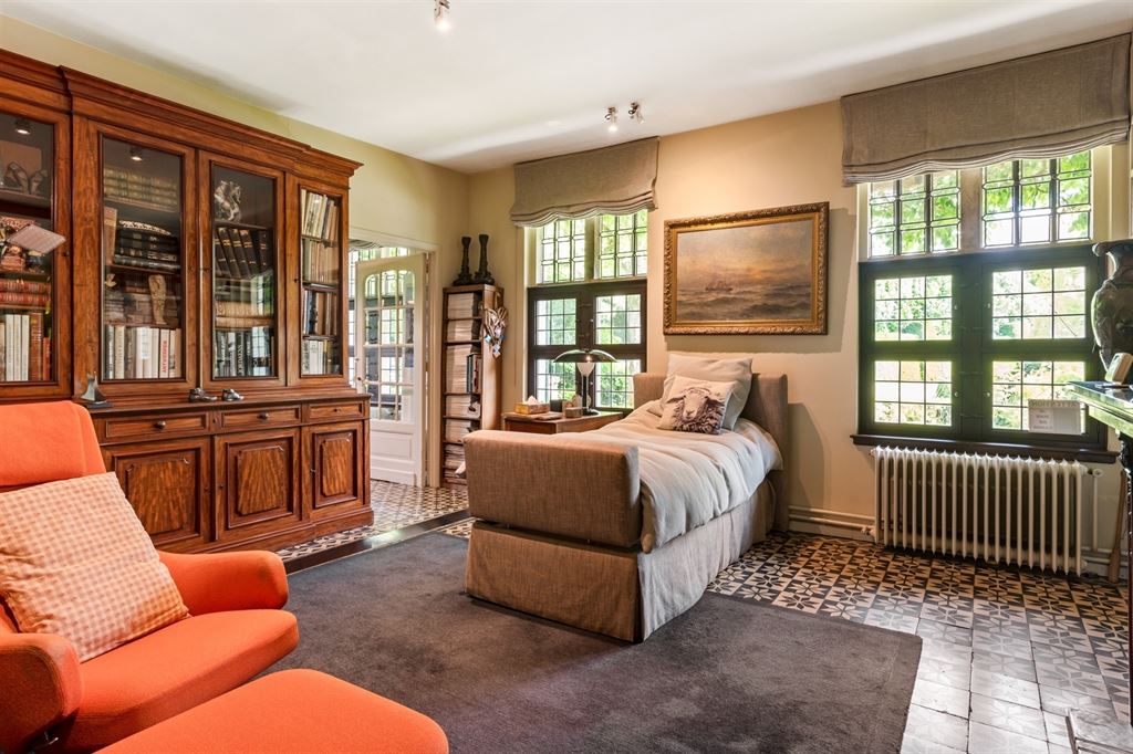 Het voormalige conciërgedeelte is volledig geïntegreerd in de woning en sluit aan op het hoofdvolume. Met originele vloeren, de houten balkenstructuur en verschillende authentieke elementen straalt ook dit deel dezelfde karaktervolle sfeer uit. Het beschikt over een eigen inkom, keuken, leefruimte en twee ruime slaapkamers. Dankzij de interne verbinding kan de woning perfect functioneren als één grote gezinswoning, maar ook flexibel ingedeeld worden in twee volwaardige woonunits, ideaal voor bijvoorbeeld gasten of praktijkruimte.