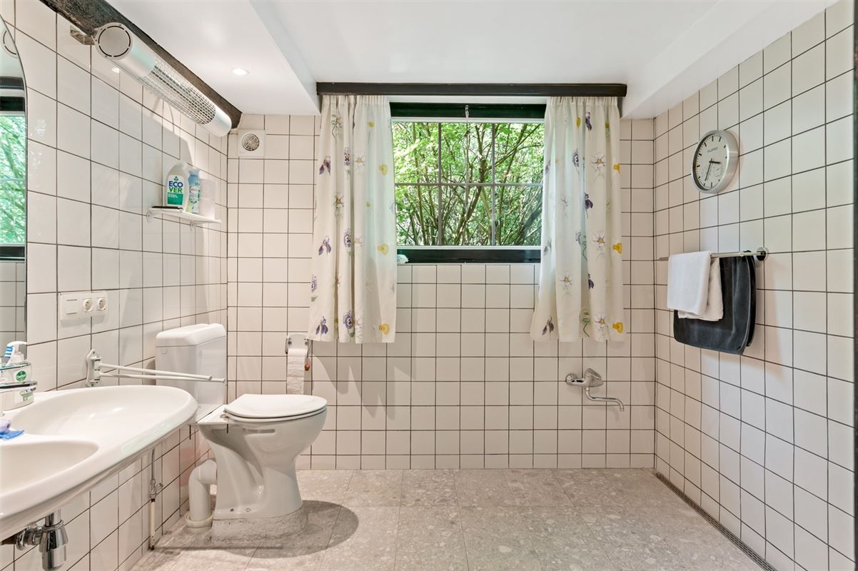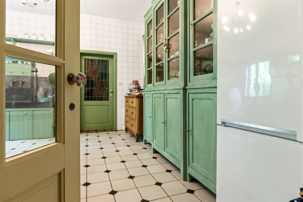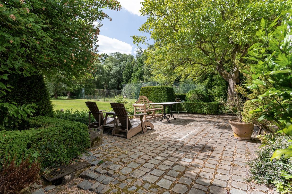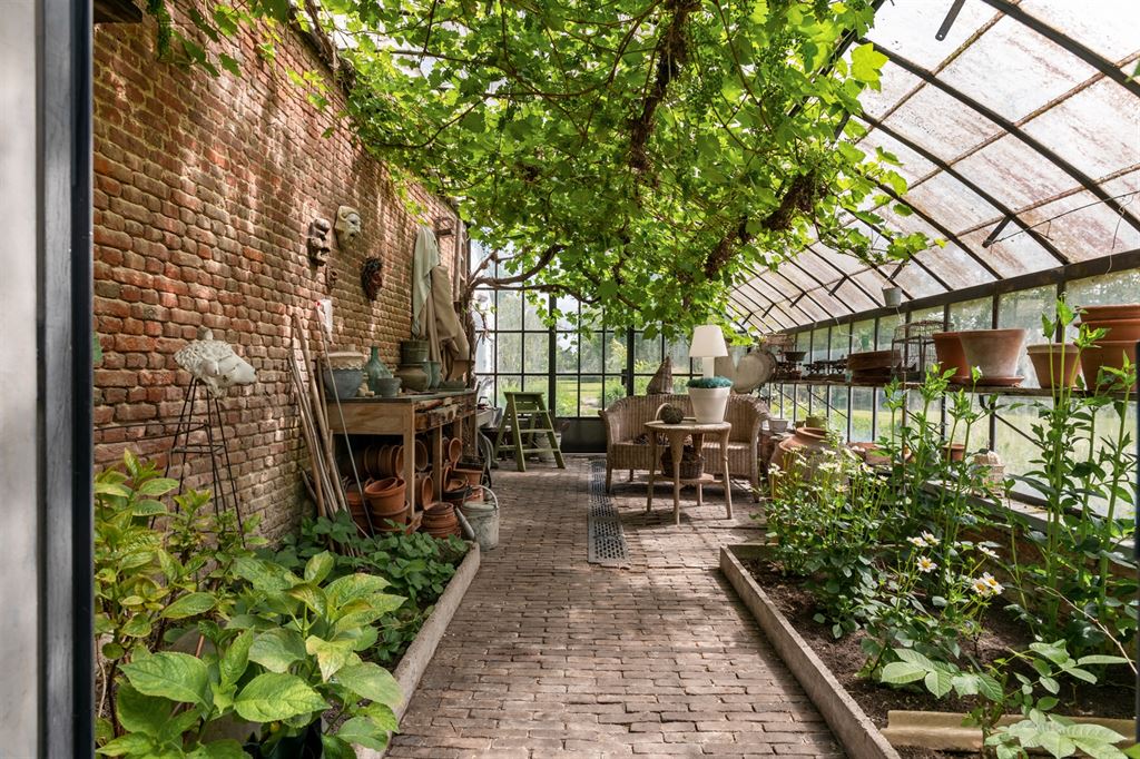 De charmante serre vormt een gezellige belevingsruimte in elk seizoen. Het voormalige tennisterrein kan opnieuw ingericht worden als sportveld of behouden blijven als sier- of bloementuin. De tuin is fraai aangelegd en bijzonder goed onderhouden, met een vijver, volgroeide bomen, gevarieerde beplanting en bloemen. Alle delen van het perceel sluiten mooi aan op de woning, wat zorgt voor een harmonieus geheel.