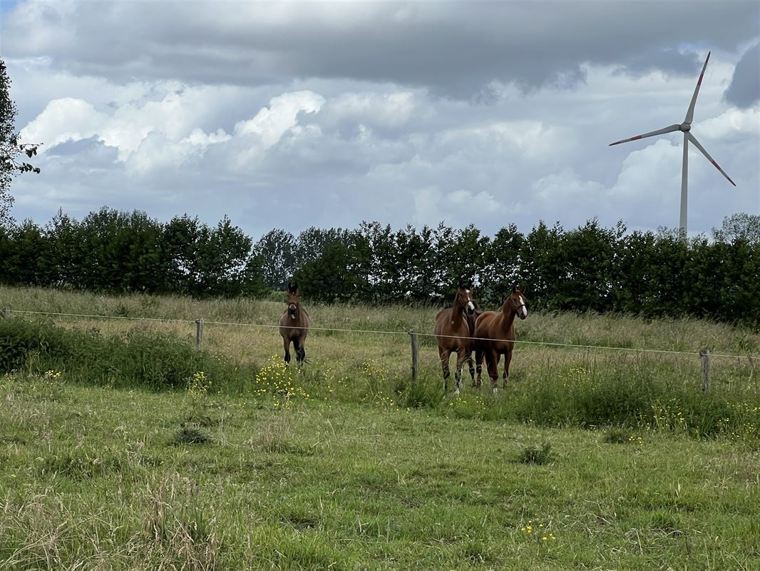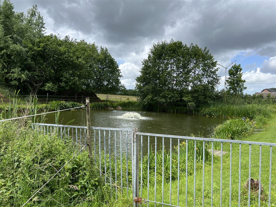 Een bijzondere troef is de groene oase, die zich achter de gebouwen bevindt. Daar situeren zich twee vijvers, omgeven door groen, met aansluitend voldoende achterliggende weide. De aanwezigheid van waterpartijen, weilanden en open vergezichten zorgt voor een uitgesproken landelijke en serene sfeer, ideaal voor dierenliefhebbers en natuurliefhebbers.