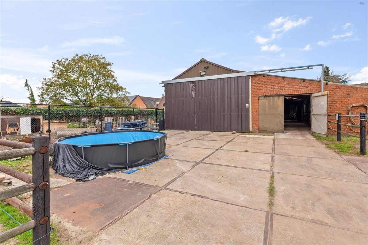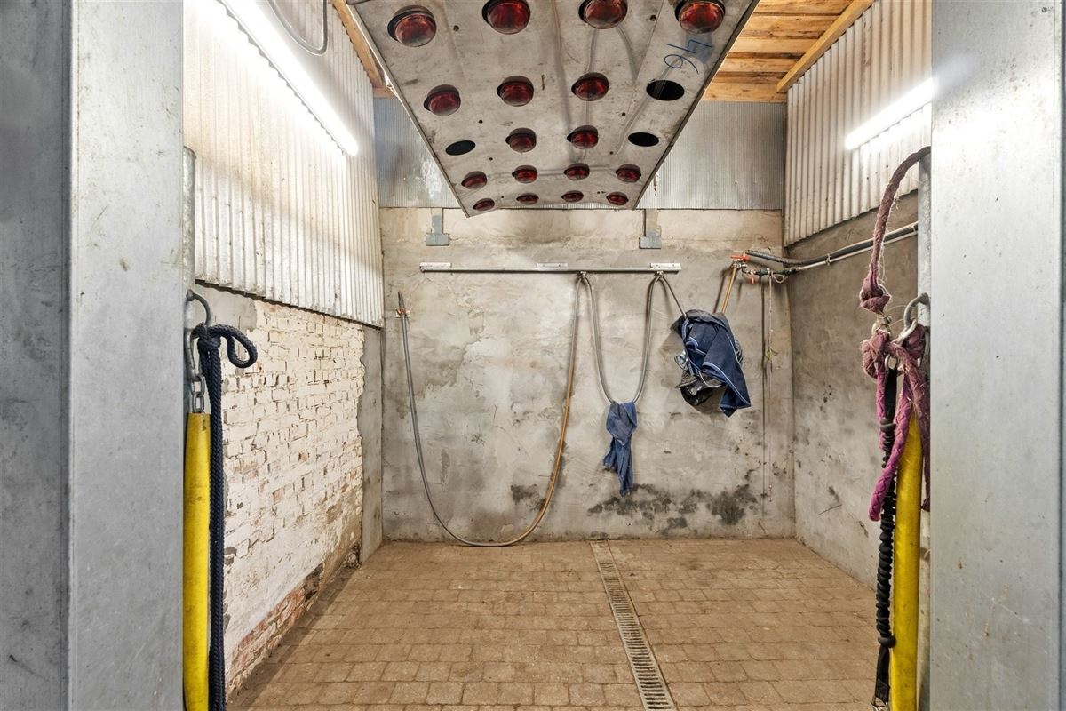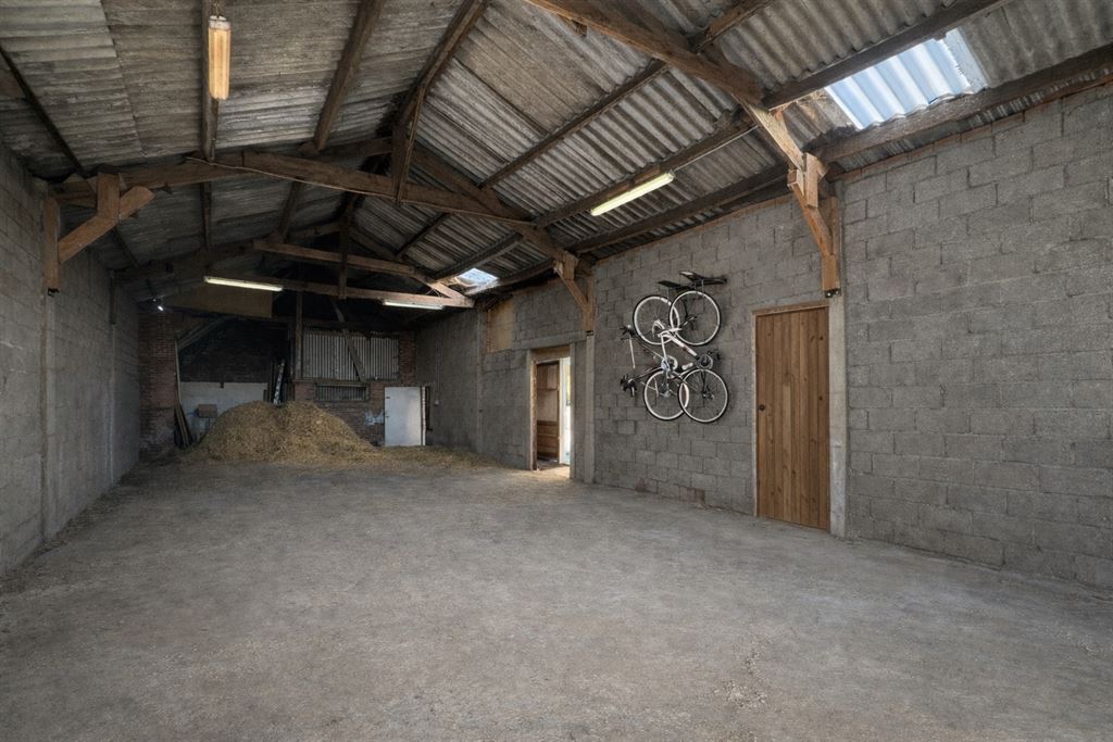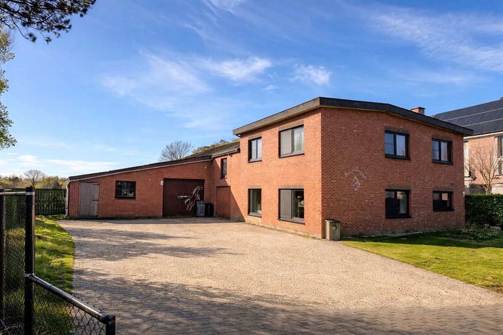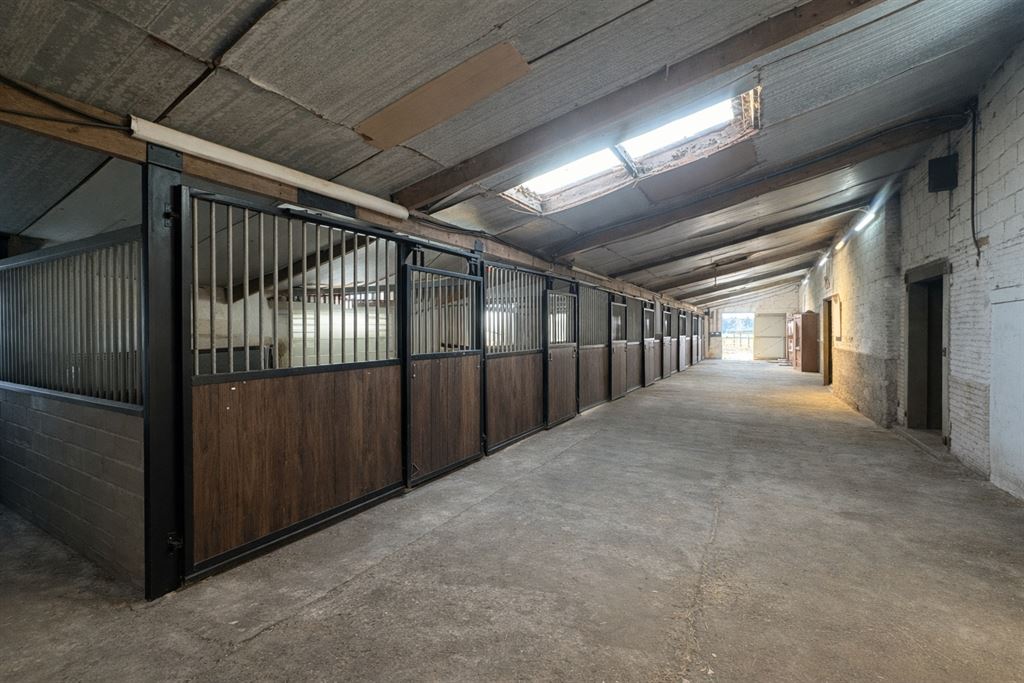 Het eigendom beschikt over een bijgebouw met een totale vloeroppervlakte van ca. 450 m², dat functioneel is opgedeeld in twee delen. Het lagere gedeelte, goed voor ongeveer 250 m², is ingericht met 8 paardenstallen, een ingebouwd solarium, een wasruimte, een hooizolder en twee werkplaatsen, aangevuld met bijkomende praktische ruimtes. Het hogere gedeelte heeft een vrije hoogte van 4 meter en is voorzien van een grote inrijpoort aan de achterzijde. Deze ruimte wordt momenteel gebruikt als stockageruimte en werkplaats, maar biedt tal van mogelijkheden afhankelijk van de gewenste invulling.