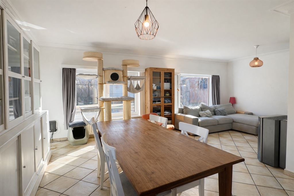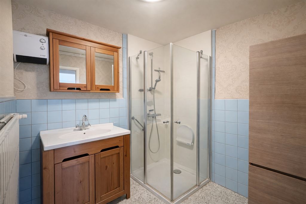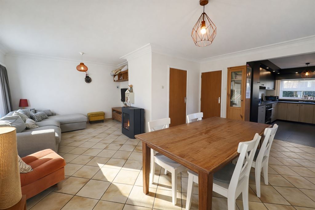 De vrijstaande woning heeft een bewoonbare oppervlakte van ca. 160 m², exclusief garage, en biedt een aangename en praktische indeling. Op het gelijkvloers bevindt zich de inkomhal, een gezellige woonkamer met gaskachel, een recente keuken uit 2019 die is uitgerust met onder meer een inductievuur van 90 cm breed, een warmeluchtoven en een vaatwasser. Verder zijn er een badkamer met douche die aan renovatie toe is, een aparte wasplaats en een veranda. Op de verdieping bevinden zich vijf volwaardige slaapkamers, een bureauruimte en een apart toilet.