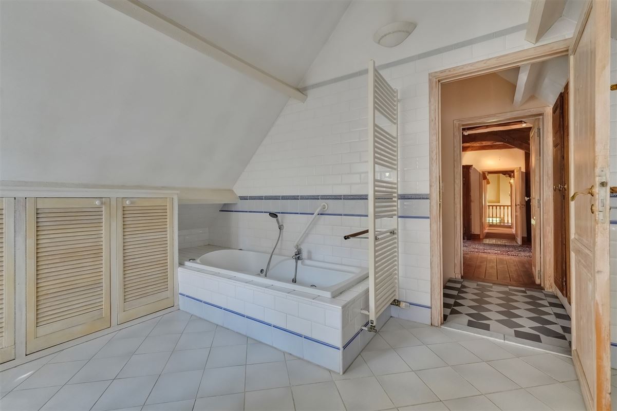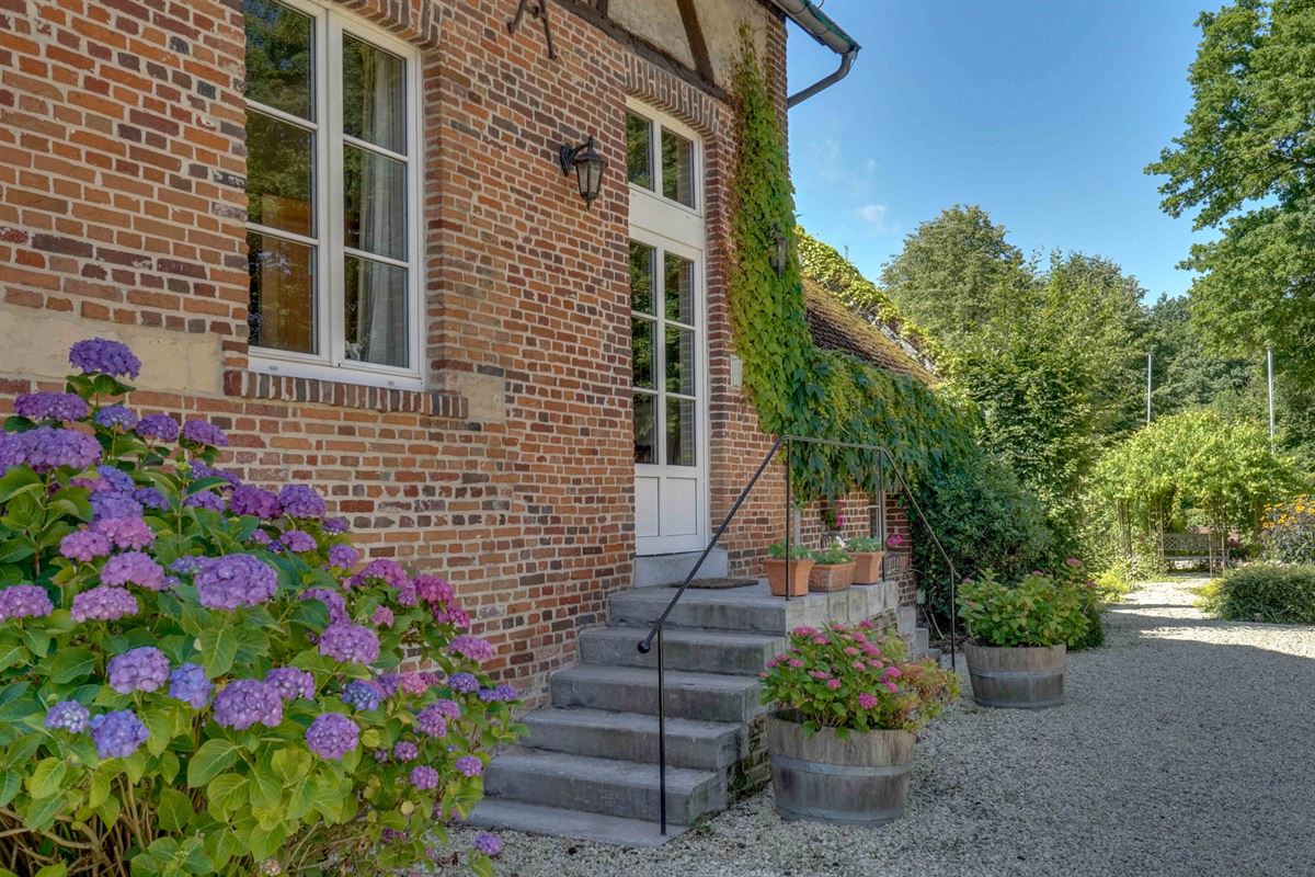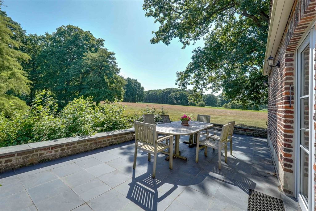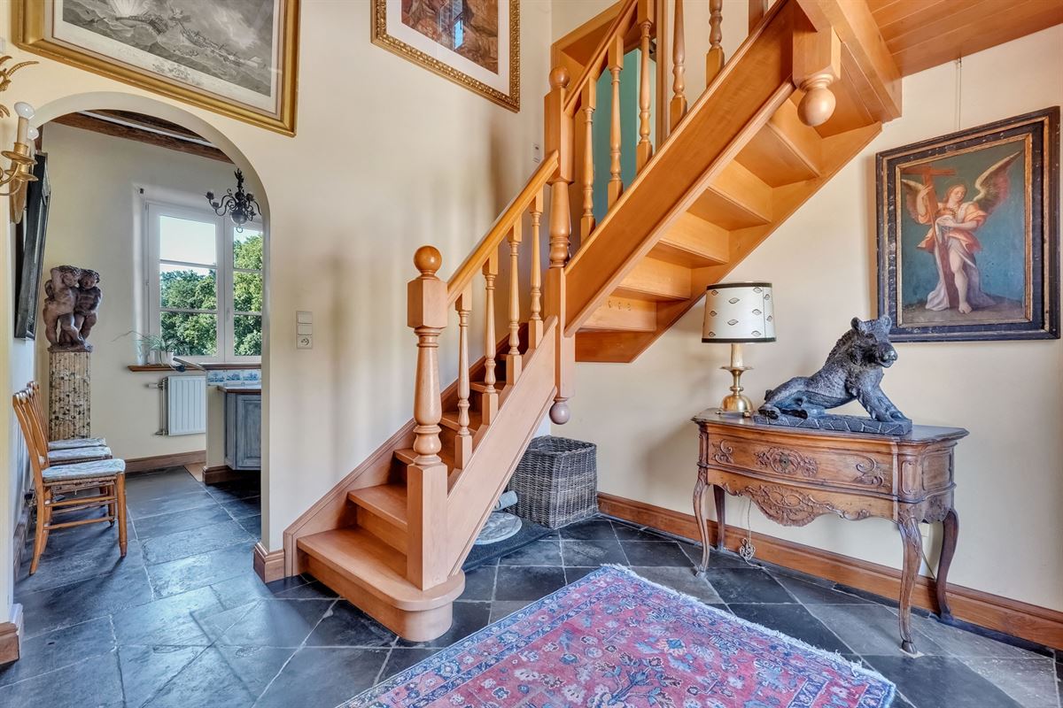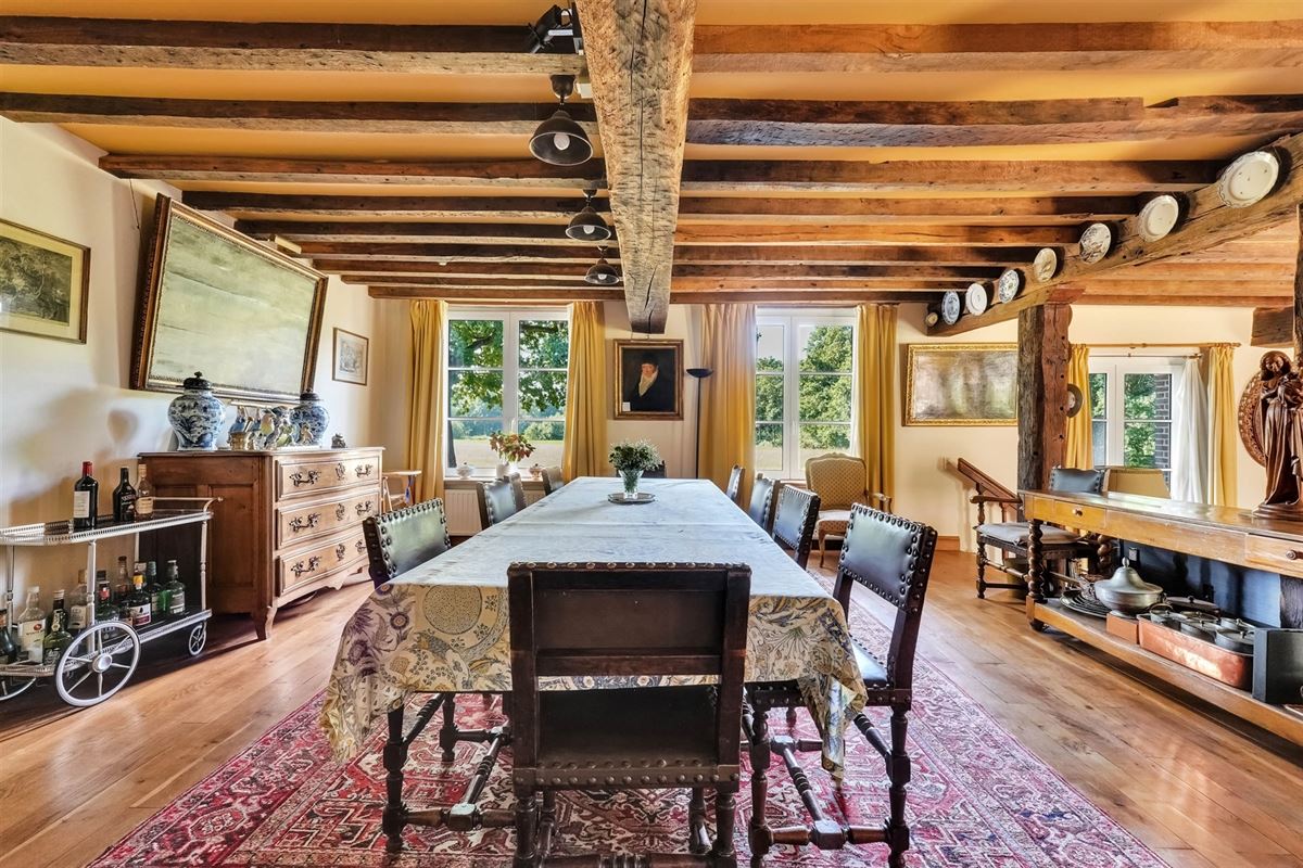 In het landelijke Kermt, op slechts enkele kilometers van het bruisende stadscentrum van Hasselt, ligt dit uitzonderlijk landgoed op ca. 4ha, temidden van een 50ha groot domein, dat bestaat uit landerijen en bossen en bekend staat onder de naam Holrakkerwining. De woning is bereikbaar via de prachtige Grote Dreef met majestueuze bomenrijen en bevindt zich midden in dit historisch domein. De woning is grotendeels omringd door een omwalling, en is ingericht in een warme, landelijke stijl die perfect aansluit bij het karakter van het domein. De keuken met buitenterras en een deel van de living (eetplaats) zijn zo'n anderhalve meter boven het maaiveld gelegen zodat u vanuit de keuken en de living kan genieten van de prachtige omgeving. U zal dagelijks de hertjes zien fourageren. De zitplaats met open haard en zijn houten balken en parket ademt dan weer de grandeur uit van deze historische herenboerderij. Op het gelijkvloers is er ook nog een inkomhal met gastentoilet en een bureau, waarvan een deel van de muren bekleed zijn met uniek goudleder. Momenteel zijn er 5 slaapkamers en 3 badkamers. Er is ook een kelder aanwezig. Rondom de woning liggen meerdere bijgebouwen, waarvan een jachthuis (ca. 10m x 12m) met open haard, die het authentieke karakter van deze eigendom versterkt. De loodsen hebben volgende afmetingen 15m x 18m en 12m x 26m bij benadering en kunnen dienst doen voor bijvoorbeeld opslag, stallingen, deel kantoor (max 100m²),.... Ook een bakhuisje met slaapverblijf en douchekamer is aanwezig. Wat deze eigendom uniek maakt, is niet alleen de ligging en de natuurlijke schoonheid, maar u verwerft een stukje Limburgse geschiedenis, waarvan de monumentale bomen stille getuigen zijn.