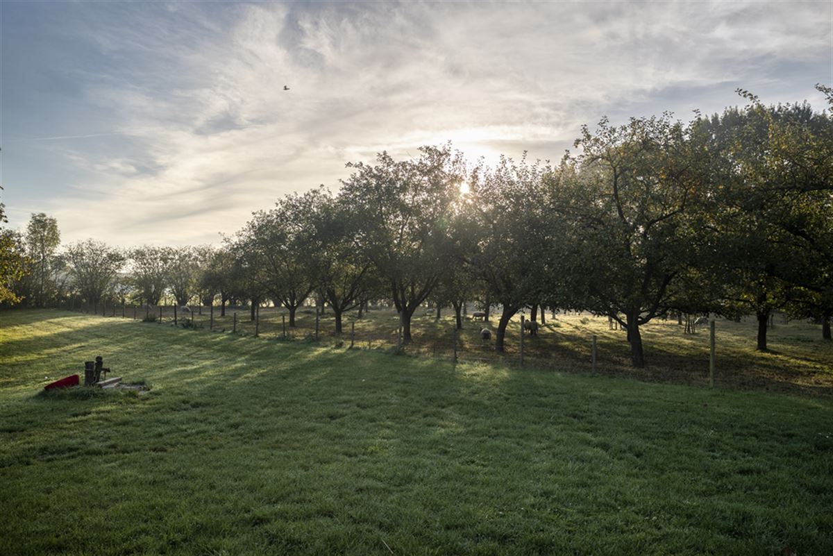 Rondom de woning ligt een mooi aangelegde tuin die toegankelijk is vanuit de leefruimtes en ruimte biedt voor het houden van dieren. Een bijkomend gebouw voor opslag van rollend materiaal en het stallen van dieren vervolledigt het geheel.