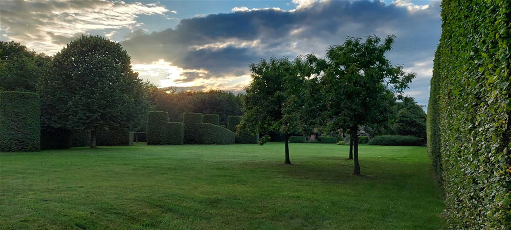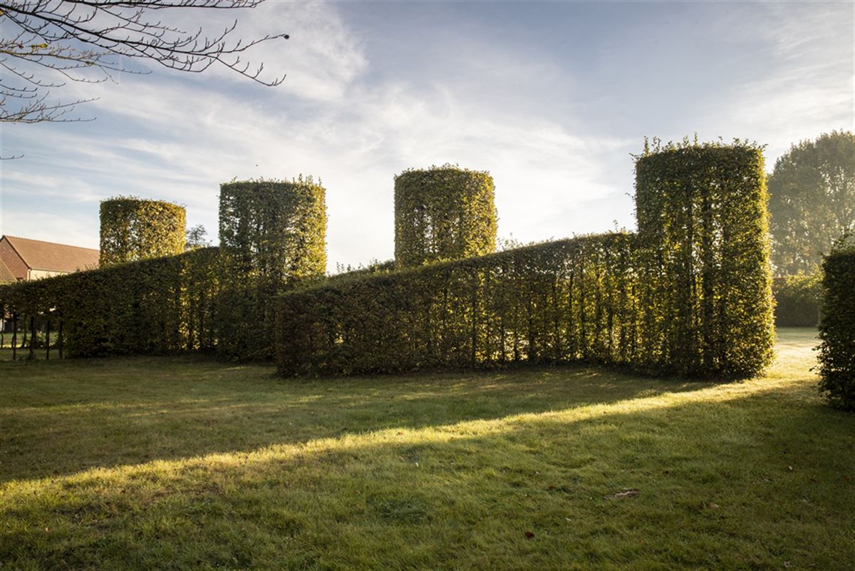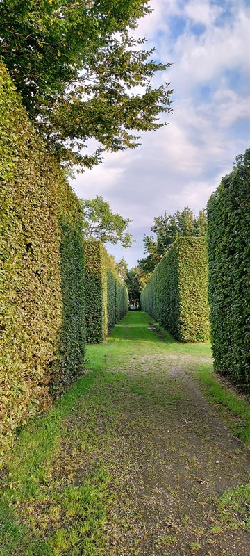 Het landhuis is via een grote overdekte doorgang verbonden met een stalgebouw. Daar vindt u een zeer een mooie open ruimte van 120m², met vergaderruimte en apart toilet, bereikbaar via een aparte toegang. Deze ruimte geniet van veel lichtinval en een prachtig uitzicht op de tuin – ideaal voor wie wonen en werken wenst te combineren in een idyllische setting in het groen.